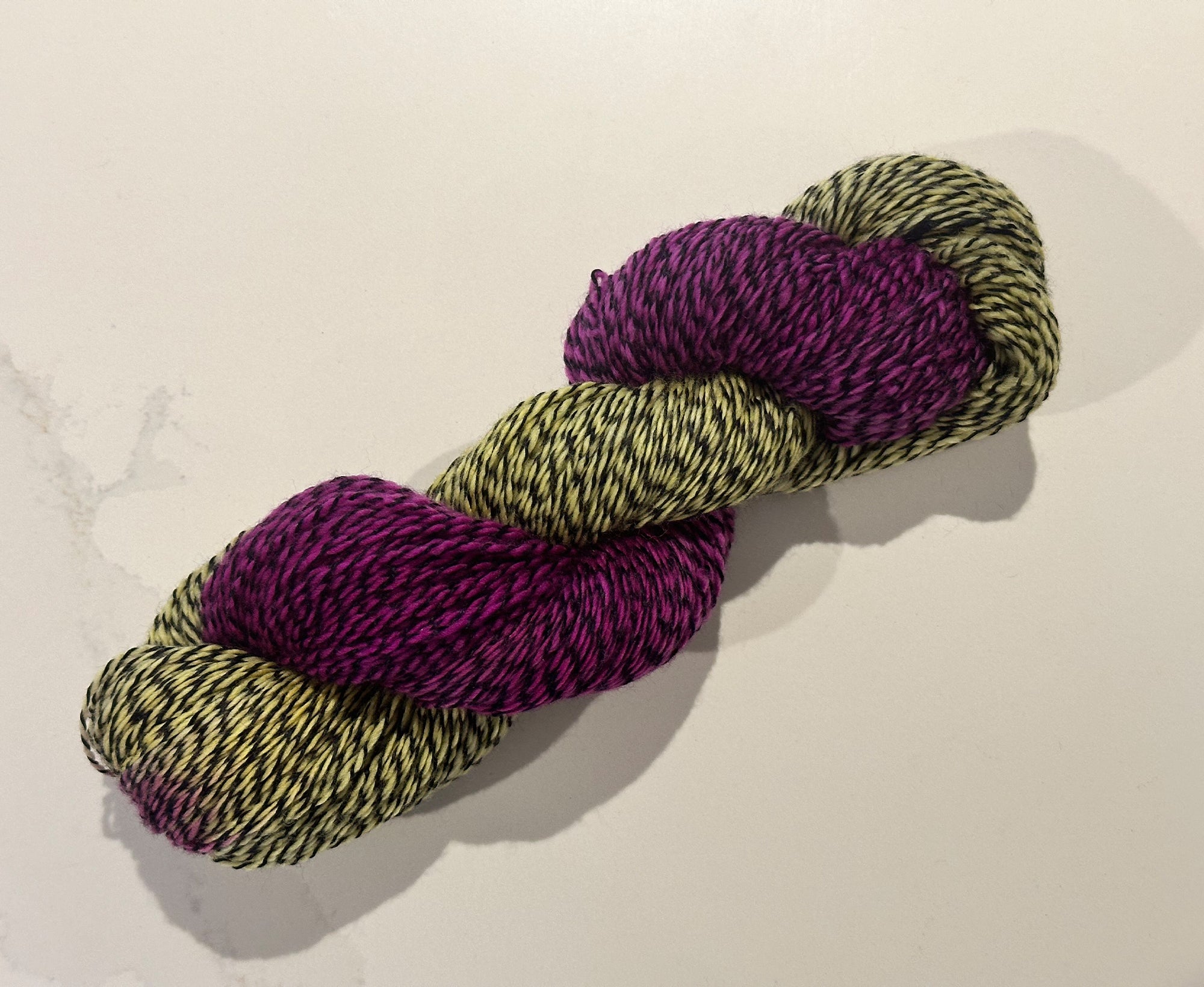 Upon undergoing the dyeing process, the yarn truly comes to life. The wool holds the dye, while the black bamboo retains its deep raven black, creating a mesmerizing marl effect.